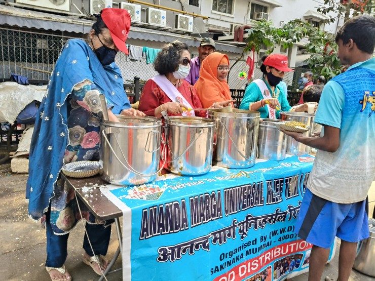 This is the weekly food distribution to approximately 300-400 people in Mumbai, India, for patients at a cancer hospital and their attendants. It’s been going on for a few years now, led by Didi Ananda Madhumaya.